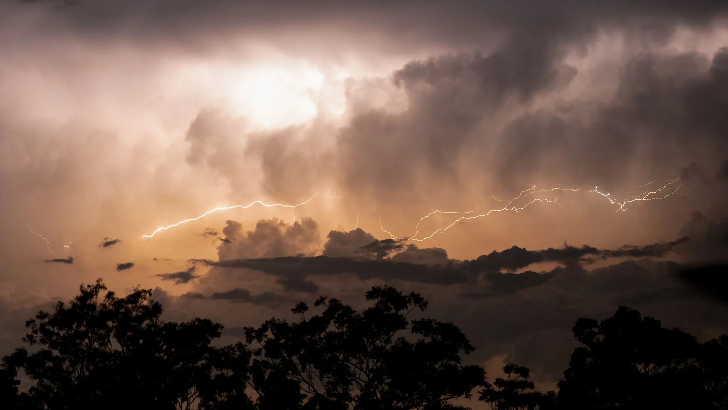 These images captured the spectacular light show produced by a thunderstorm in the Top End. Many dense, towering clouds rise and burst while lightning flashes illuminate the dramatic scene. Look closely, and you will find small lightning branches and rainfalls.