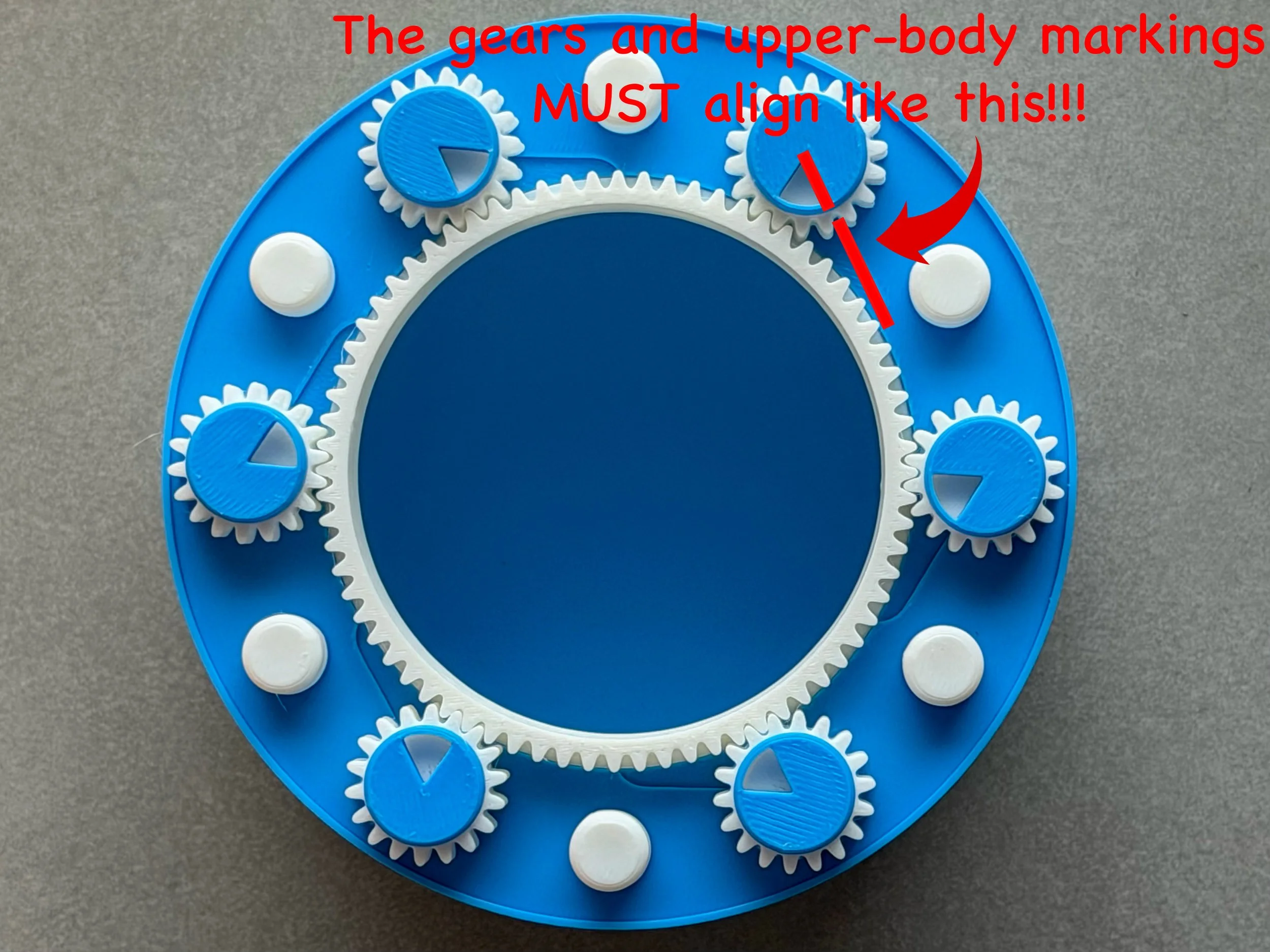 This is the most important step. Make sure the gears are aligned exactly as shown in the reference image!!!