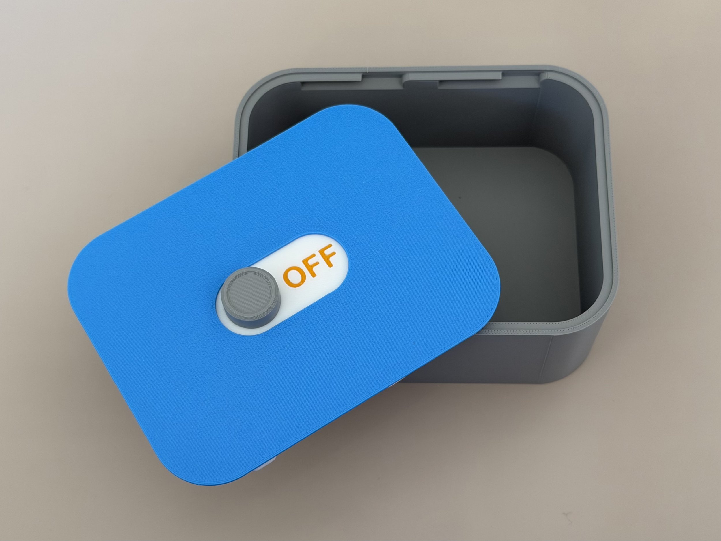 Caution: when printing the box, make sure to use supports, preferably tree supports for easier removal. Otherwise, the mechanism may not print properly or work as intended.